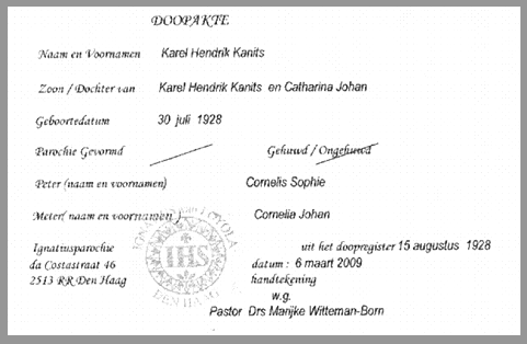 belang stelling te zijn geweest. Peter (ome Cees) die als doopgetuigen optrad was in het dagelijks le ven rechercheur