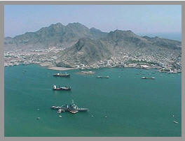 Aden,zij die de hondenwacht hadden, die bemanningsleden van de Hellenic Prince waren de eerste die aan de kim het ruige berglandschap van Jemen in het vizier kregen De scheepsklok slaat 8 glazen (4 uur)als het schip in de havenbekken van Aden afmeert,nog te vroeg om die passagiers die aan wal zouden gaan te wekken.Veel animo om aan land te gaan is er echter niet.