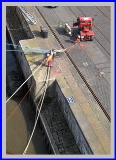 De eerste verbinding met de vaste wal is de werplijn, gevolgt door een