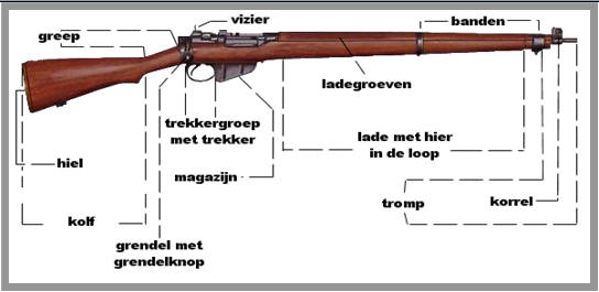met een geweer, een oliebuisje en een doorhaalkoordje. Gedurende de