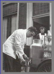 melkboer die zijn zuivel produc ten met een handkar vervoerd. De groenteman