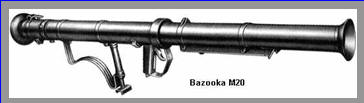 Het klapstuk echter het afvuren van het anti tank wapen de Bazooka M20 6,5 kg lengte 155cm de tegenhanger van de Duitse Pantzerfaust Op een speelse wijze werden de handelingen die in de theorie lessen er ingepompt waren ten uitvoer gelegd. Het wapen bediend door twee man waarvan één de schutter en de ander de lader. De schutter knielt, heeft het wapen op de schouder en houd deze op het doel gericht, terwijl de lader de granaat achter in de vuurmond stop. Hij sluit de electro kabels aan en meldt “wapen geladen” gevolgd door een tik op de helm van de schutter, waarna de lader zo dicht mogelijk naast de schutter neerknielt. De schaal aan de loopmonding zorgt voor een geluidsombuiging, en dient ter bescherming van schutter en lader Dan is het wachten op het commando “vuur”