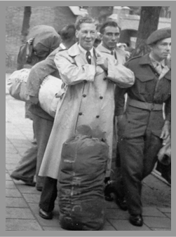 Na wat administratieve handelingen, een vraag en antwoord formaliteit, wordt men doorverwezen naar de inname goederen (fourier) die de inhoud der plunjebaal sor teert en afvinkt op de kledinglijst.De ver missing van mijn zakmeskoord werd als “Manco”aangemerkt en als RM (rekening man) afgedaan.(12 cent) Mijn voorstel om dit te verevenen met nadienen wordt onbeant woord gelaten. (humorloos)