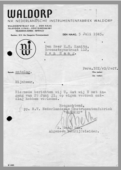 Enige dagen na de capitulatie van de Duitsche overheersing meldt ik mij terug bij de Waldorp fabriek.,waar men tracht de draad weer op te nemen,. Nu pas is de schade te overzien die is toegebracht bij de demontage en ontmanteling van de Draai en Fraisbanken Boor, Slijp, Stamp en Zaagmachines.